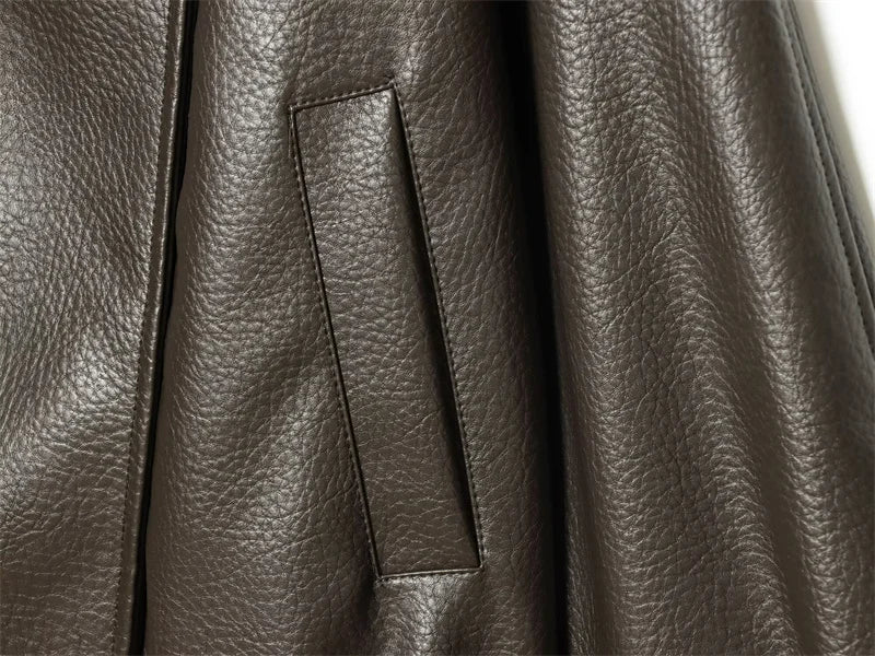 Women’s Pebble Faux Leather Biker Jacket – Black Long Sleeve